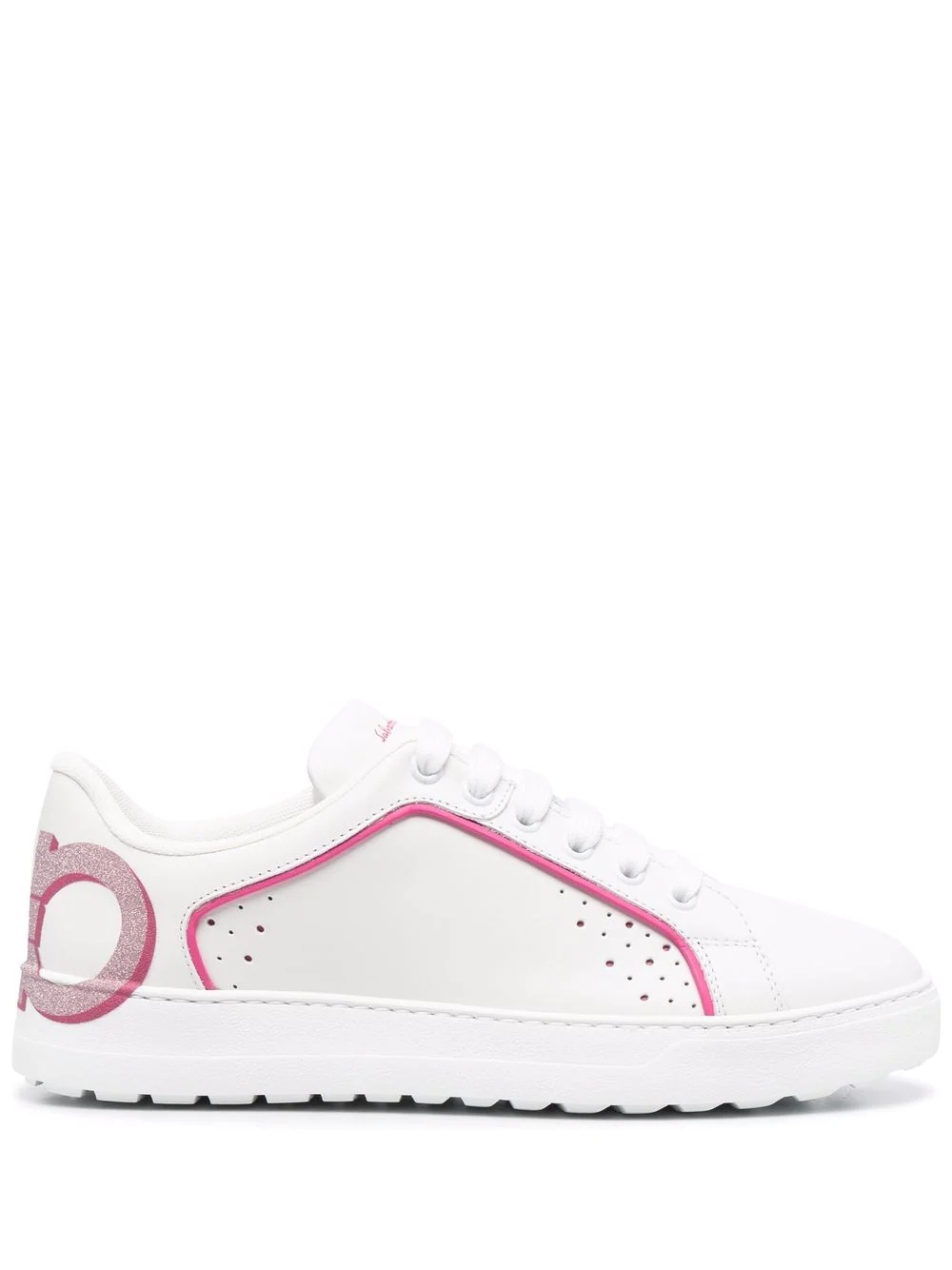 Manhattan Gancini-print sneakers white calf leather Gancini print contrasting trim logo-print tongue front lace-up fastening round toe flat rubber sole branded insole Made in Italy Composition Outer: Calf Leather 100% Sole: Rubber 100% Lining: Leather 100% SIZE & FIT Measurement HEEL 0.98 in(2.5 cm) Sole height 0.78 in(2 cm)