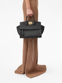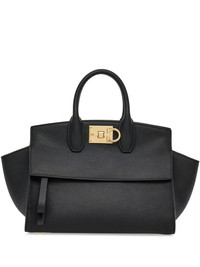 medium The Studio Soft tote bag Highlights - Black - Calf leather/goatskin - Gancini buckle - Engraved logo - Gold-tone hardware - Two rolled top handles - Main compartment - Metal feet Made in Italy Composition Outer: CALFSKIN 90%, Fabric 10% Lining: Goat Skin 100%, RDS Product Name: BLACK ORCHID EDP Division: TF (TOM FORD BEAUTY) ALCOHOL DENAT. 100% SIZE & FIT Measurement DEPTH 5.51 in(14 cm) HEIGHT 9.84 in(25 cm) WIDTH 11.41 in(29 cm)