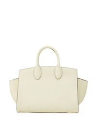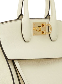 medium The Studio tote bag Highlights - Ivory white - Calf leather/goatskin - Grained texture - Gancini buckle - Two rolled top handles - Main compartment - Removable pouch Made in Italy Composition Outer: CALFSKIN 90%, Fabric 10% Lining: Goat Skin 100% SIZE & FIT Measurement DEPTH 5.51 in(14 cm) HEIGHT 9.84 in(25 cm) WIDTH 11.41 in(29 cm)