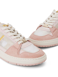 Mesh suede lace-up sneakers Highlights - Peach pink - Panelled design - Suede panelling - Mesh panelling - Logo plaque - Gancini print - Embossed logo to the rear - Pull-tab at the heel - Round toe - Front lace-up fastening - Branded insole - Flat rubber sole Made in Italy Composition Sole: Rubber 100% Lining: Fabric 100% Outer: Fabric 80%, Calf Suede 20%