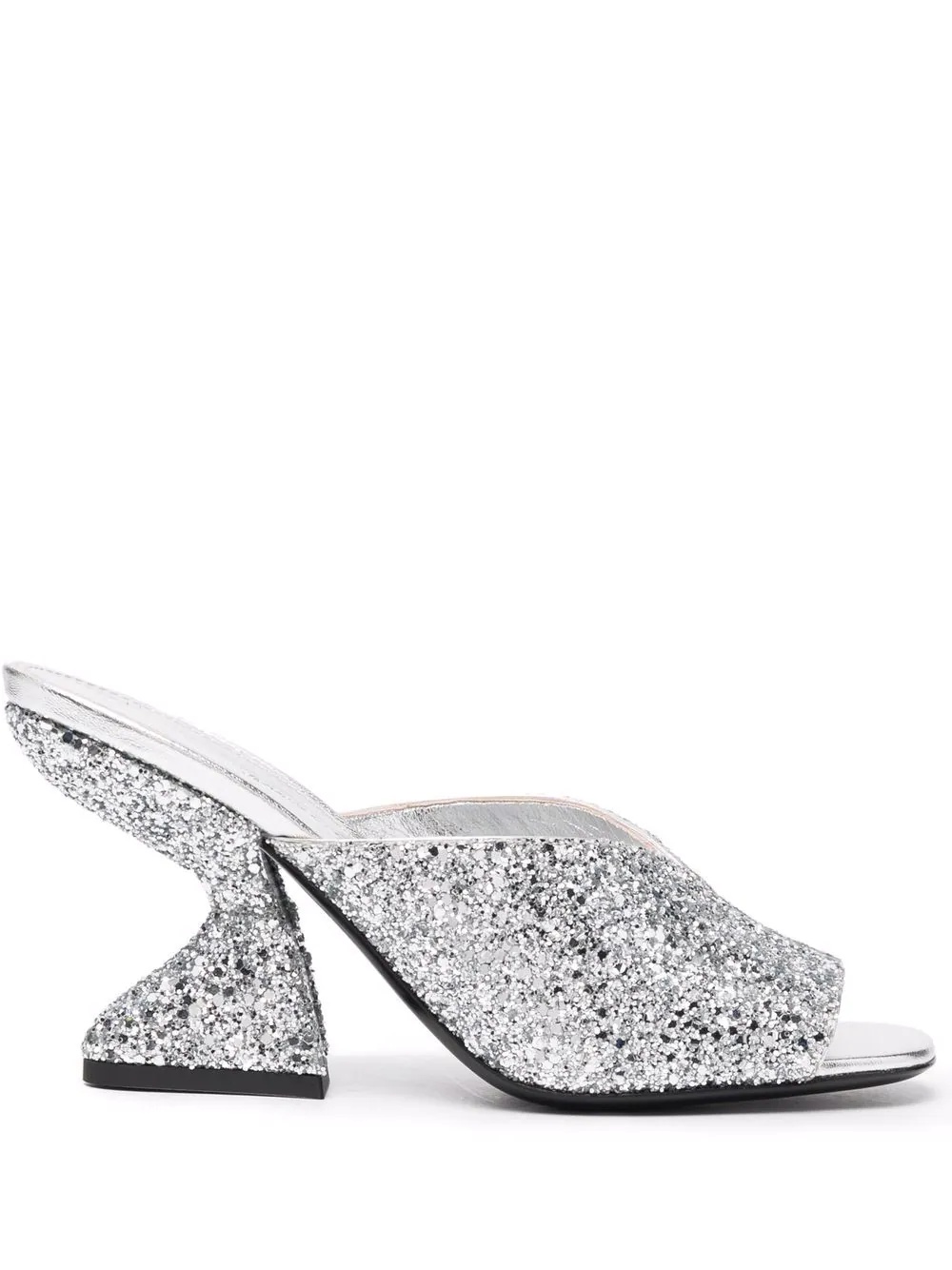 80mm Sansu metallic glitter sandals Highlights - Silver-tone - Calf skin - Glitter detailing - Open toe - Branded insole - High sculpted heel Made in Italy Composition Outer: PVC 100% Sole: Leather 100% SIZE & FIT Measurement HEEL 3.14 in(8 cm)