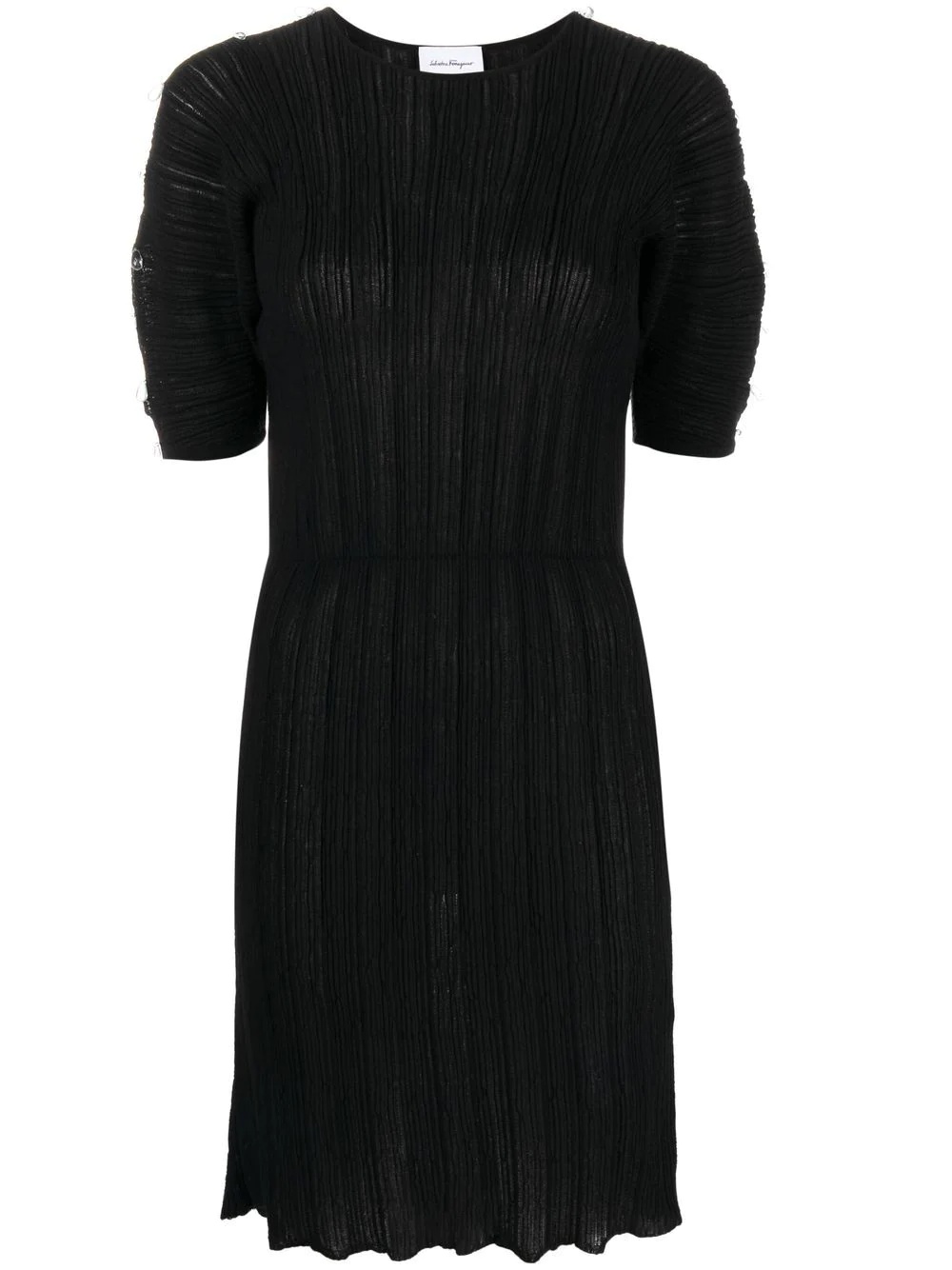 micro-pleated midi dress micro-pleated midi dress from Ferragamo. Made in Italy Composition Outer: Cotton 82%, Polyamide 18% Lining: Polyamide 100% SIZE & FIT Model measurements Height 5 ft 11 in(1.8 m) Bust/Chest 31.49 in(80 cm) Hips 35.82 in(91 cm) Waist 24.8 in(63 cm) FittingInformation This piece fits true to size. We recommend you get your regular size Cut for a slim fit Made with a mid-weight non-stretch fabric Washing instructions Dry Clean Only
