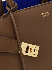 mini Hug tote bag Highlights - Brown - Calf-length - Toggle fastening - Gancini buckle - Two rolled top handles - Logo stamp to the front - Luggage tag - Main compartment - Contrast lining - This piece comes complete with a protective dust bag. Made in Italy Composition Outer: CALFSKIN 100% Lining: Lambskin 100% SIZE & FIT Measurement DEPTH 7.5 in(19 cm) HEIGHT 8.69 in(22 cm) WIDTH 12.4 in(31.4 cm)