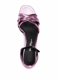 mirrored 60mm heel sandals pink leather metallic sheen open toe crossover strap detail branded leather insole buckle-fastening ankle strap leather outsole Made in Italy Composition Lining: Calf Leather 100% Outer: Calf Leather 100% Sole: Calf Leather 100% SIZE & FIT Measurement HEEL 2.36 in(6 cm)
