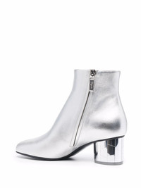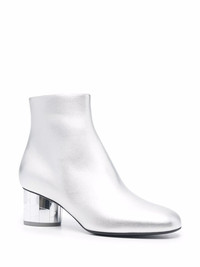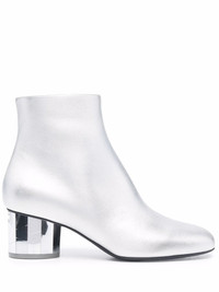 Mirrored heel leather ankle boots Crafted in soft laminated calf leather, these silver-tone ankle boots display a metallic effect which is extended to the mirrored heel. The low block heel is designed with a cracked effect, further elevating the contemporary style. Made in Italy Composition Lining: Leather 100% Sole: Leather 100% Outer: Leather 100% SIZE & FIT Measurement CIRCUMFERENCE 9.05 in(23 cm) HEEL 2.55 in(6.5 cm) HEIGHT 5.11 in(13 cm)