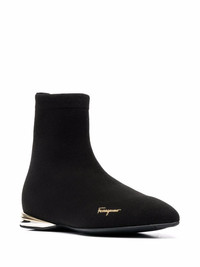 Missy logo boots Black leather Missy logo boots from Ferragamo. Highlights - Black - Leather - Gold-tone hardware - Logo print to the side - Pointed toe - Ankle-length Made in Italy Composition Sole: Rubber 100% Outer: Fabric 100% Lining: Calf Leather 100% SIZE & FIT Measurement CIRCUMFERENCE 7.87 in(20 cm) HEEL 0.78 in(2 cm) HEIGHT 5.9 in(15 cm) Sole height 0.39 in(1 cm)