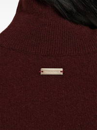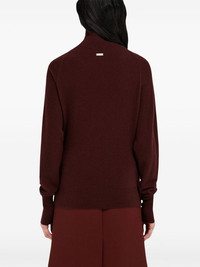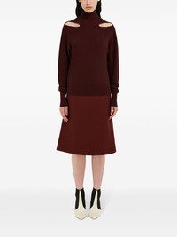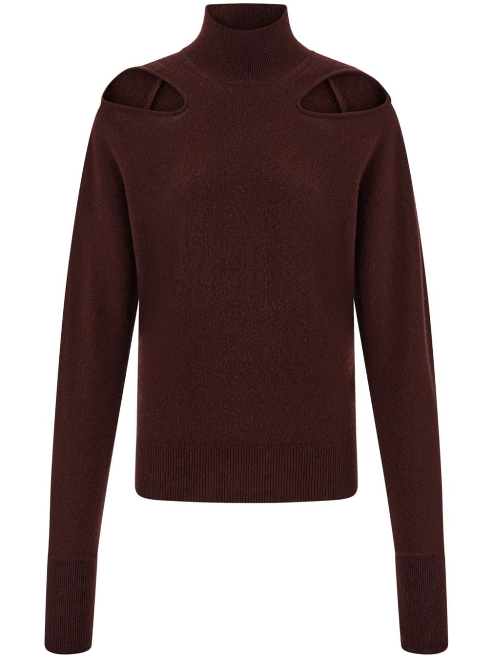 mock-neck cut-out jumper Highlights - Blood red - Virgin wool-cashmere blend - Fine knit - Ribbed-knit edge - Mock neck - Cut-out detailing - Drop shoulder - Long sleeves - Logo plaque - Ribbed cuffs and hem Made in Italy Composition Outer: Virgin Wool 70%, Cashmere 30%