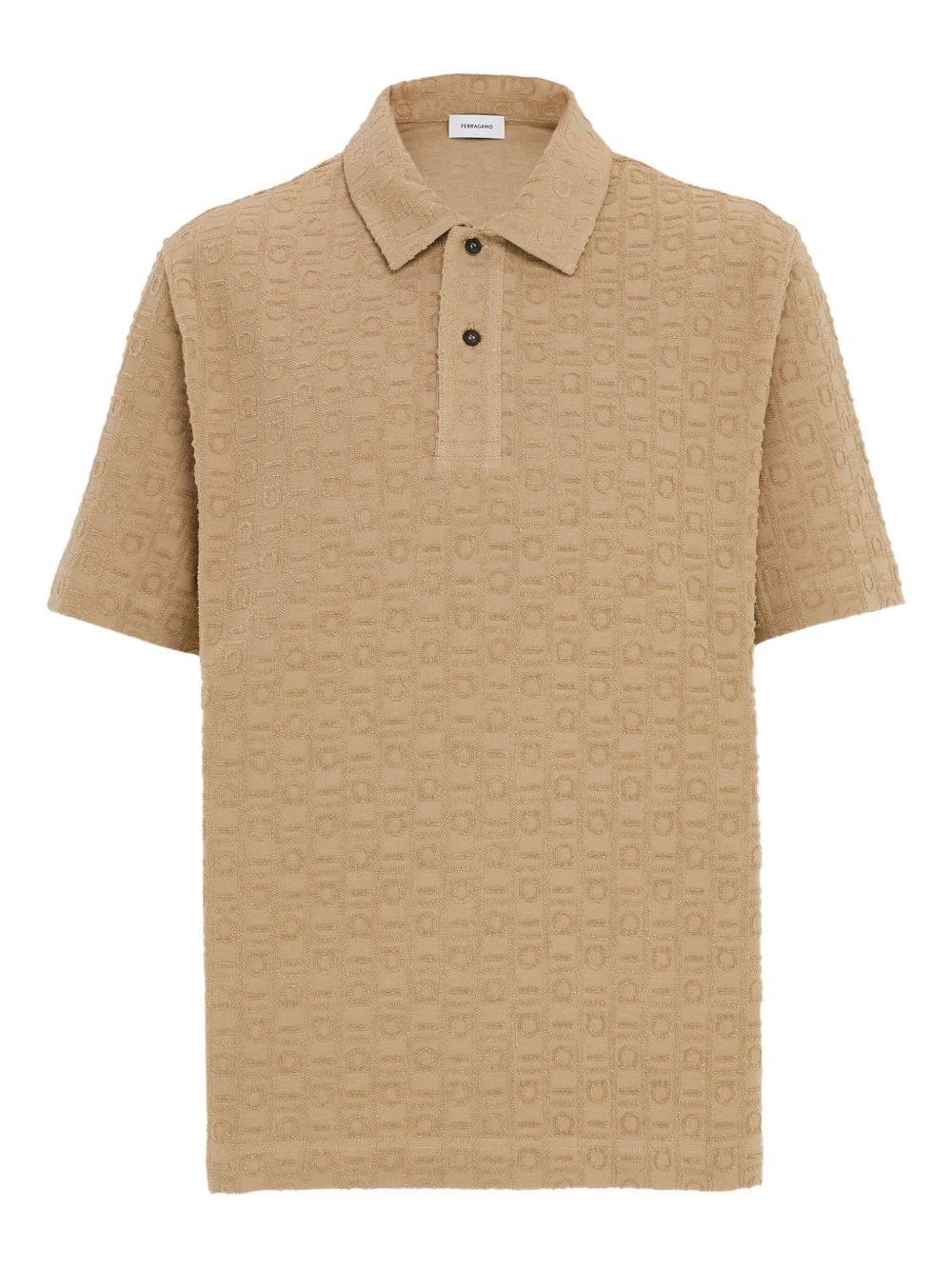 monogram-pattern polo shirt Highlights - Almond beige - Front button placket - Polo collar - Short sleeves - Straight hem Made in Italy Composition Organic Cotton 100%