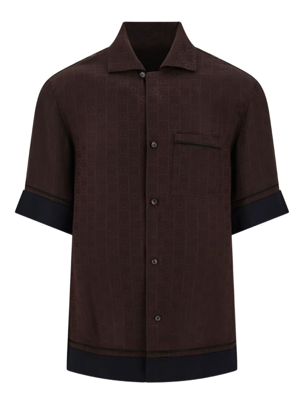 monogram short sleeve shirts Highlights - Coffee brown - Front button fastening - Chest patch pocket - Striped edge - Short sleeves Made in Italy Composition Organic Silk 100%