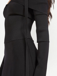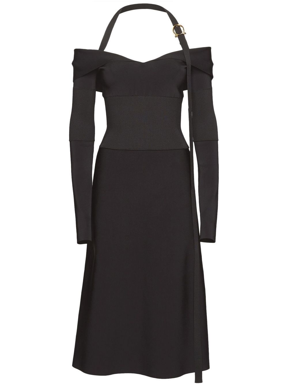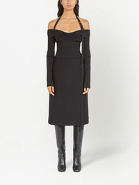 off-shoulder midi dress core black off-shoulder halterneck long sleeves A-line skirt mid-length Made in Italy Composition Viscose 60%, Polyamide 40%