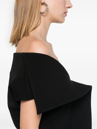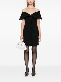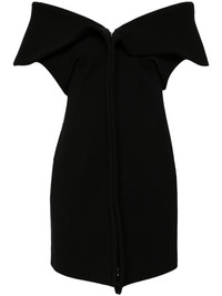 off-shoulder mini dress Highlights - Black - Twill weave - Front zip fastening - V-neck - Off-shoulder - Cap sleeves - Fitted waistline - Dart detailing - Full lining - Straight hem - Thigh-length Made in Italy Composition Polyamide 47%, Acrylic 38%, Wool 13%, Elastane 2% SIZE & FIT Model measurements Height 5 ft 9 in(1.75 m) Bust/Chest 31.88 in(81 cm) Hips 34.64 in(88 cm) Waist 24.01 in(61 cm) FittingInformation Designed for a slim fit that sits just away from the body offering a close yet comfortable fit Made from a midweight stretch fabric, this piece offers elasticity and flexibility when worn