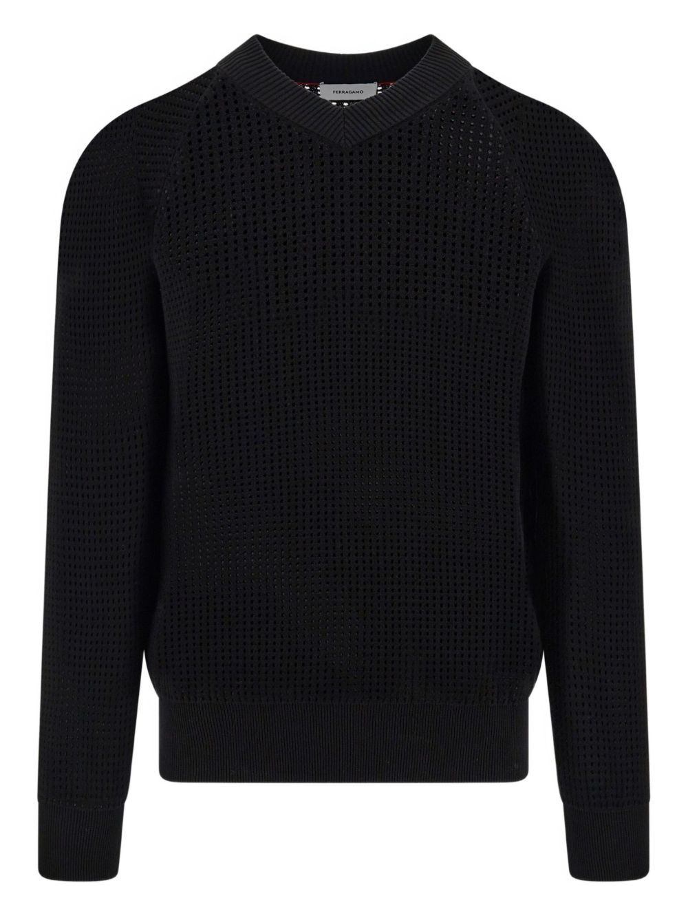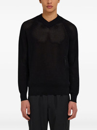 open-knit sweater Highlights - Black - Ribbed cuffs and hem - V-neck - Long sleeves Made in Italy Composition Cotton 100% Washing instructions Read Manufacturer Guidelines