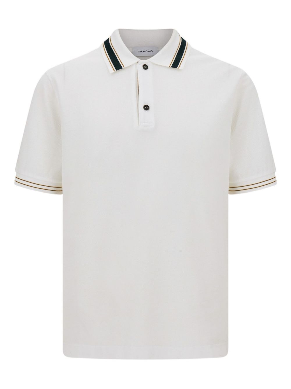organic cotton polo shirt Highlights - White - Contrasting collar - Front button placket - Short sleeves - Straight hem Made in Italy Composition Organic Cotton 100% Washing instructions Read Manufacturer Guidelines