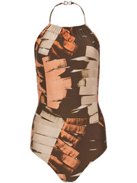 palm-print halterneck swimsuit Palme-print one-piece from Ferragamo. Made in Italy Composition Nylon 80%, Spandex/Elastane 20% Washing instructions Hand Wash