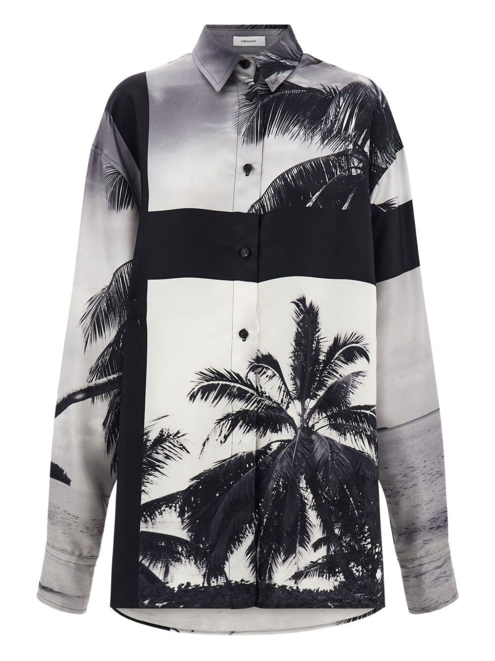 palm-tree print shirt Highlights - Grey black - Silk - Trinidad print - Asymmetrical hem - Visible stitching - Side slits Made in Italy Composition Silk 100% Washing instructions Read Manufacturer Guidelines