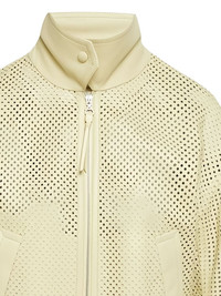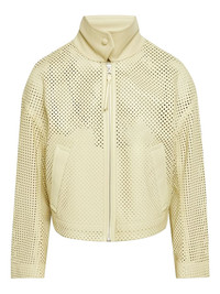 perforated leather jacket Highlights - Yellow - Perforated design - Front zip fastening - High neck - Button detail - Front pockets Made in Italy Composition Outer: Lambskin 100% Washing instructions Specialist Cleaning