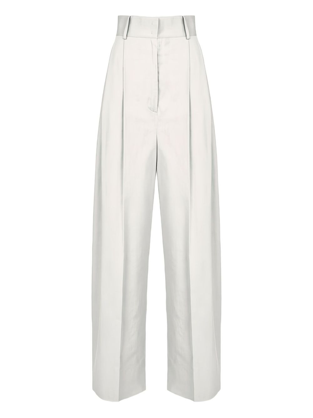 pleated high-waisted trousers Highlights - Off-white - Pleated front - High waist - Button fly - Belt loops Made in Italy Composition Fabric 100% Washing instructions Read Manufacturer Guidelines