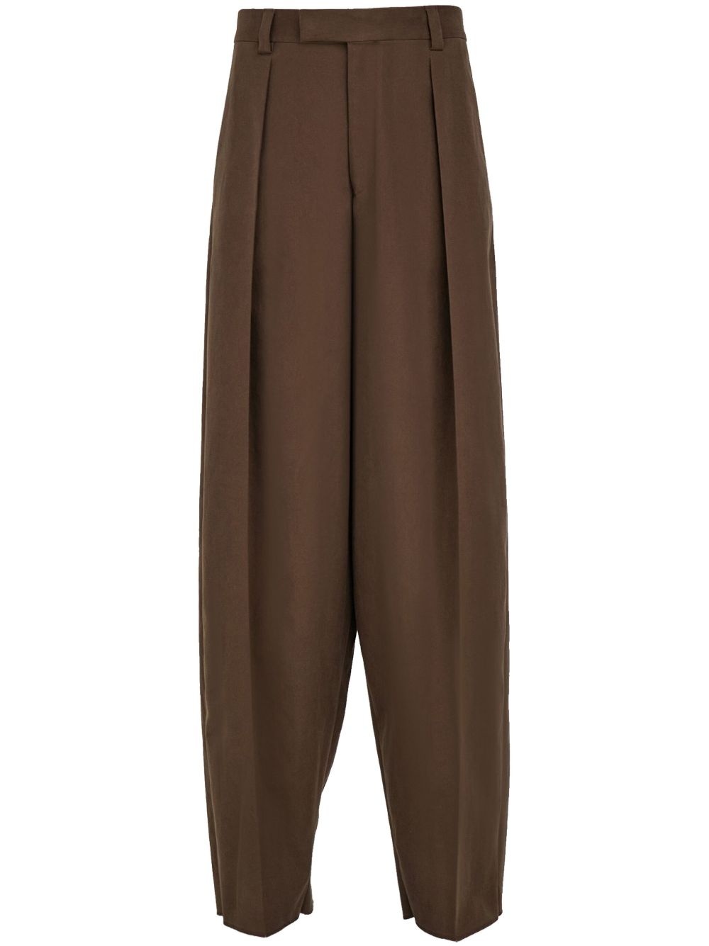 pleated trosuers Highlights - Earth brown - Concealed front button, hook and zip fastening - Belt loops - Two rear welt pockets Made in Italy Composition Cotton 97%, Elastane 3%