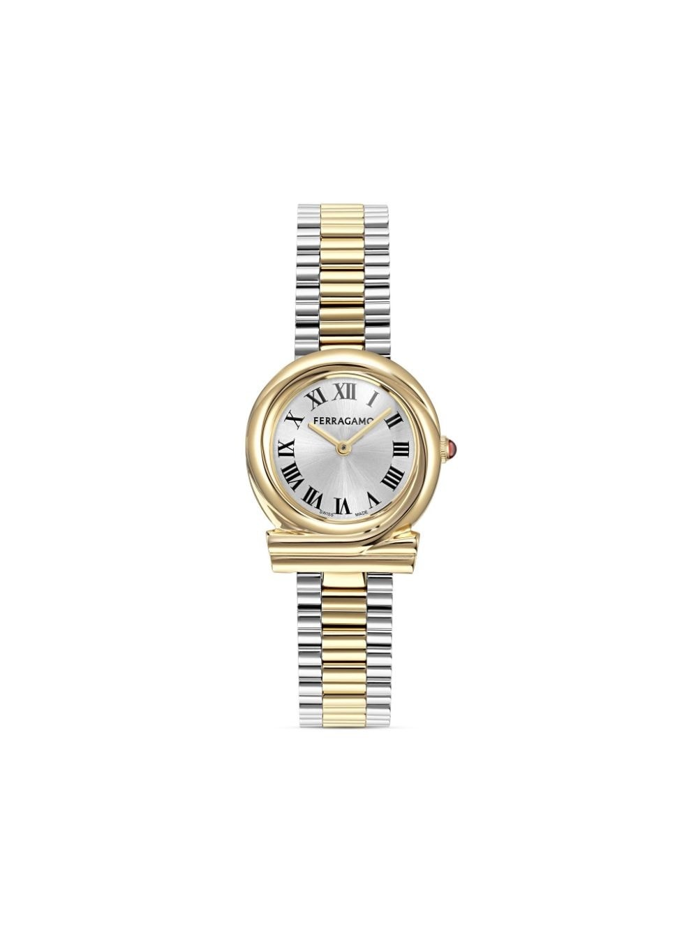 Gancini Twisted 28mm Highlights - Silver-tone - Gold-tone - Stainless steel - Sapphire-crystal glass - Roman numeral dial - Stainless steel link bracelet - Concealed clasp fastening - Quartz movement Imported SIZE & FIT Measurement DIAMETER 1.1 in(2.8 cm)