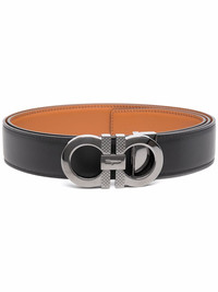 reversible Gancini belt Black/brown calf leather reversible Gancini belt from Ferragamo. Highlights - Black/brown calf leather reversible gancini belt from salvatore ferragamo featuring reversible, gancini buckle, engraved logo, punched holes and adjustable fit. Made In Italy Composition Calf Leather 100% SIZE & FIT Measurement Minimum Length 39.37 in(100 cm) TOTAL LENGTH 43.3 in(110 cm) WIDTH 1.37 in(3.5 cm)