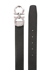 reversible Gancini belt Wrap yourself in timeless style with this reversible Gancini belt from Ferragamo. Crafted from calf leather, this belt boasts a reversible design. Never get tired of using it! Highlights - Black/brown - Calf leather - Reversible - Gancini buckle - Silver-tone hardware - Punched holes - Adjustable fit Made in Italy Composition Calf Leather 100% SIZE & FIT Measurement Maximum Length 39.37 in(100 cm) Minimum Length 35.43 in(90 cm) WIDTH 1.37 in(3.5 cm)