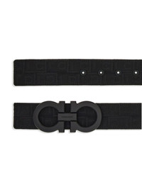 reversible Gancini belt Highlights - Black - Leather/fabric - Reversible - Monogram pattern - Tonal stitching - Tonal design - Gancini buckle - Engraved logo - Punched holes - Adjustable fit Made in Italy Composition Outer: Fabric 100% Lining: CALFSKIN 100%