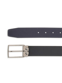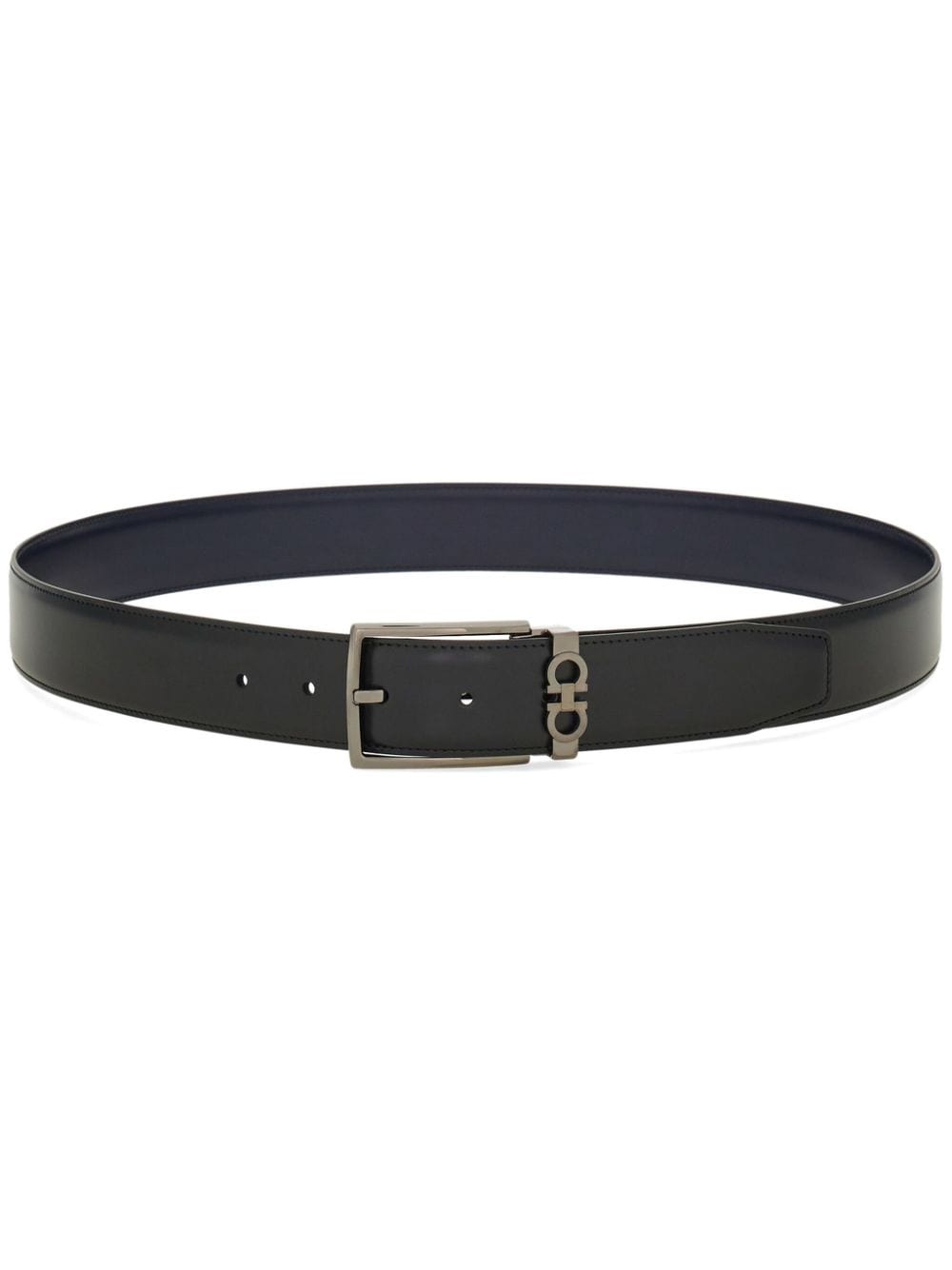 reversible Gancini leather belt Highlights - Navy/black - Calf leather - Smooth grain - Tonal stitching - Reversible - Gancini buckle - Punched holes - Adjustable fit Made in Italy Composition Outer: Calf Leather 100% SIZE & FIT Measurement WIDTH 1.37 in(3.5 cm)