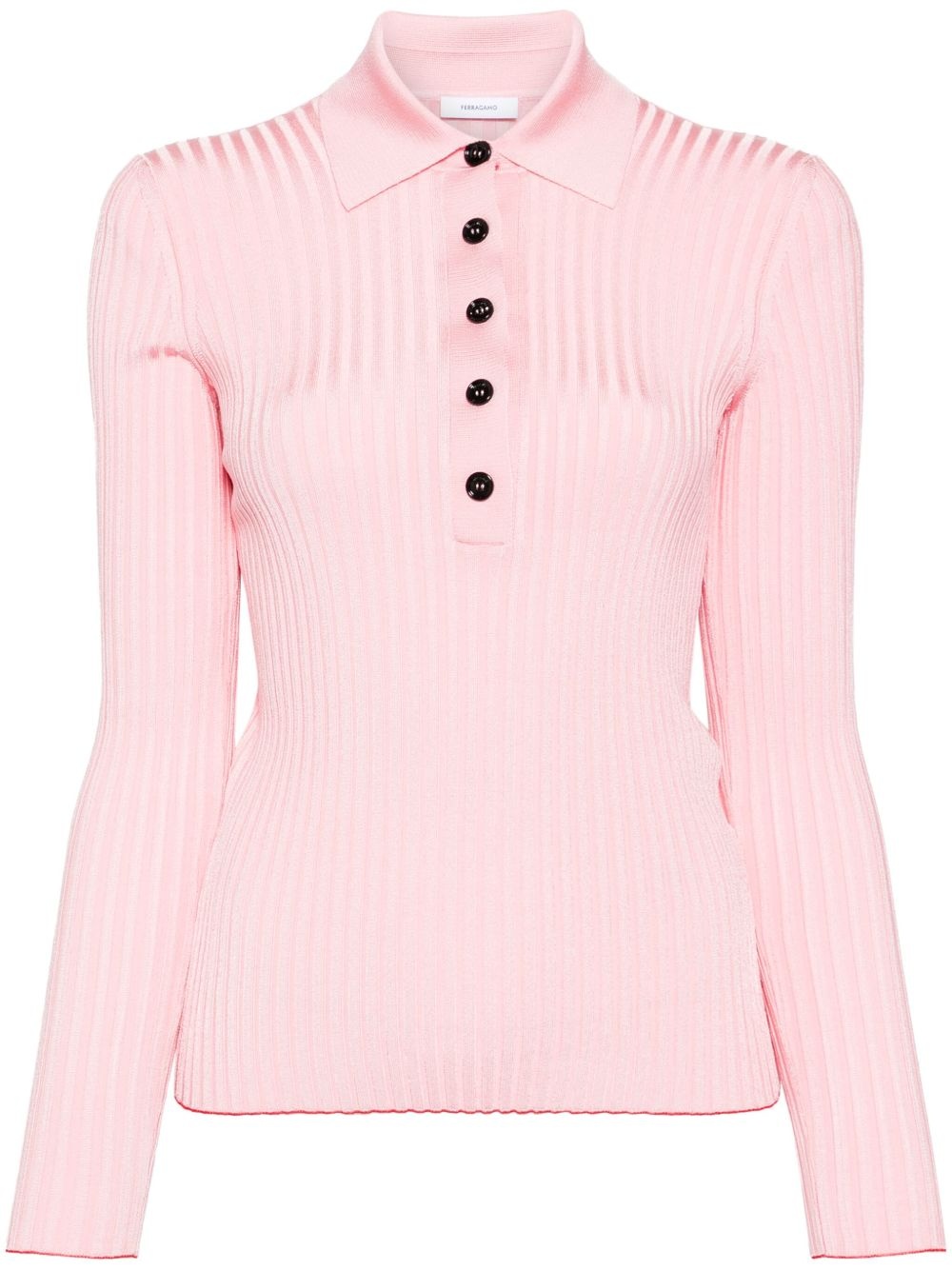 ribbed polo top Highlights - Light pink - Short front button fastening - Stretch-jersey - Straight hem Made in Italy Composition Viscose 100%