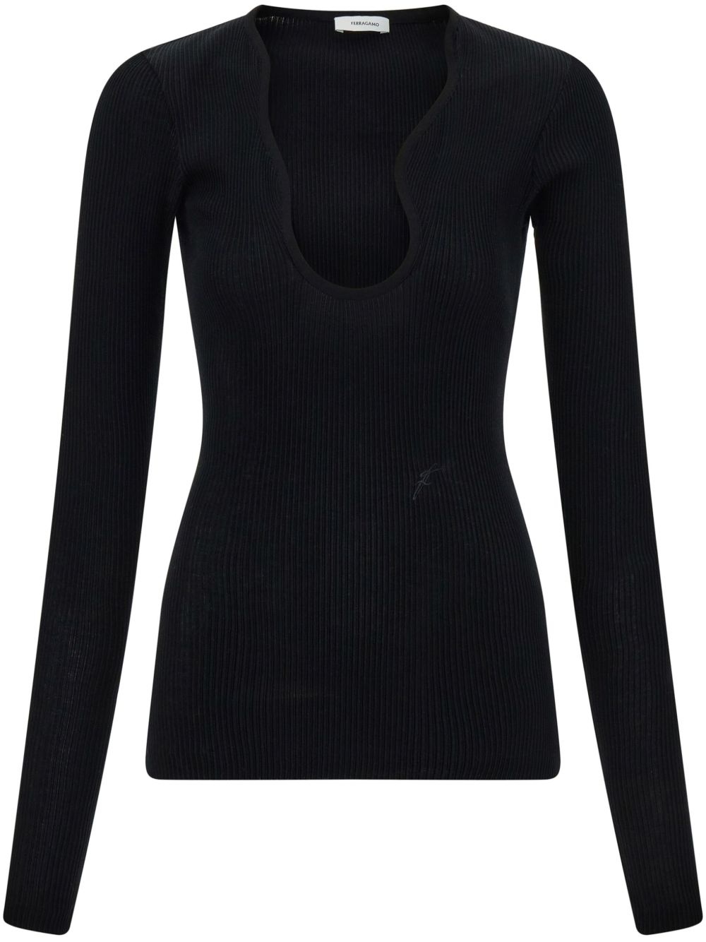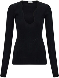 rippled-neckline sweater Highlights - Black - Embroidered logo to the side - Long sleeves Made in Italy Composition Cotton 100%