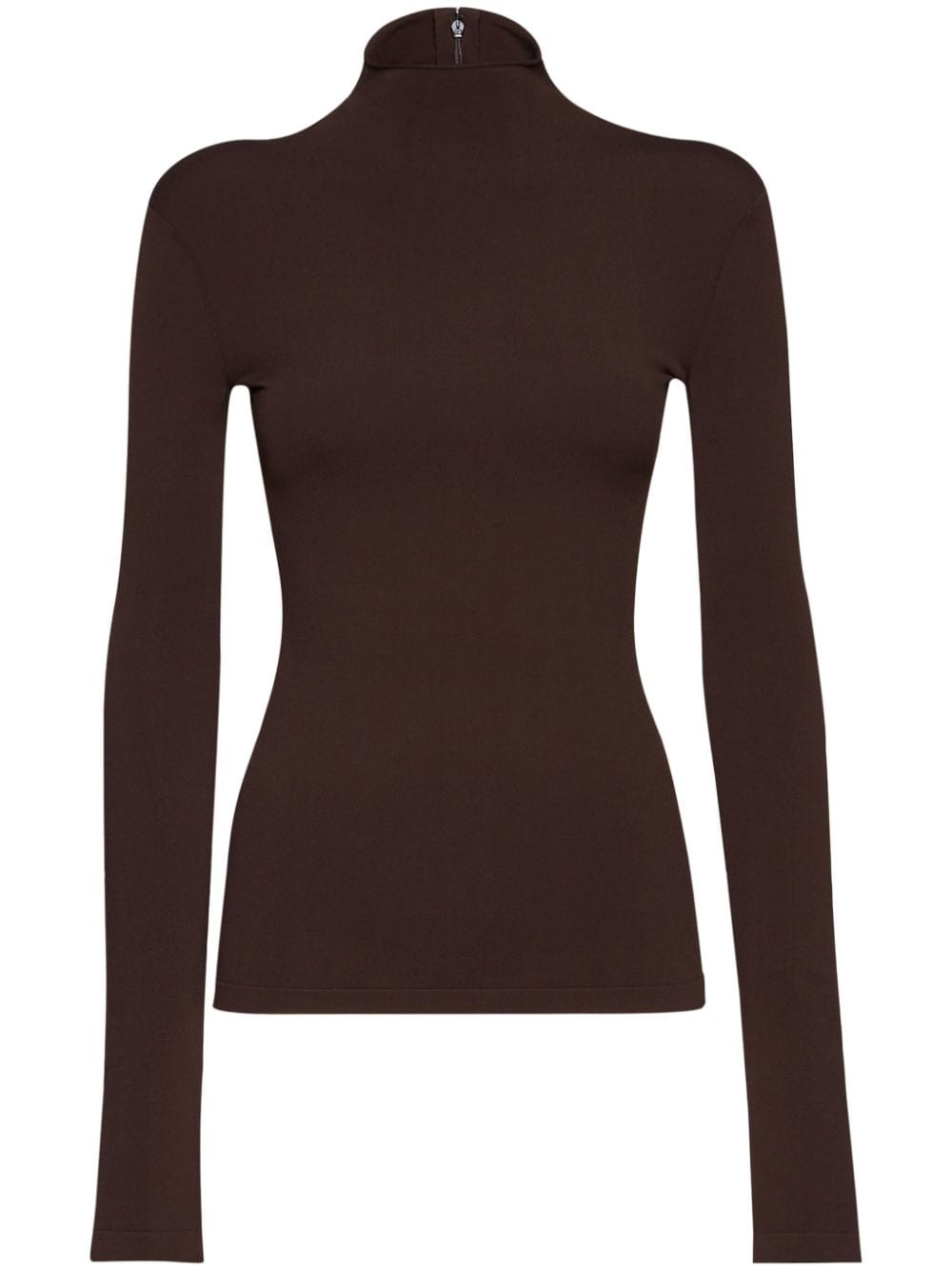 roll-neck cashmere-blend jumper Highlights - Cocoa brown - Cashmere blend - Knitted construction - Roll neck - Concealed rear zip fastening - Long sleeves - Straight hem Made in Italy Composition Outer: Cashmere 90%, Polyamide 9%, Elastane 1%