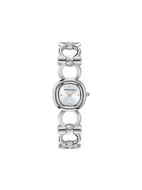 Double Gancini Jewel 25mm Highlights - Silver-tone - Stainless steel case - Quartz movement - Baton hands - Push-down crown - Butterfly clasp fastening - This item comes with a standard two-year warranty from the brand. Imported SIZE & FIT Measurement DIAMETER 0.98 in(2.5 cm)