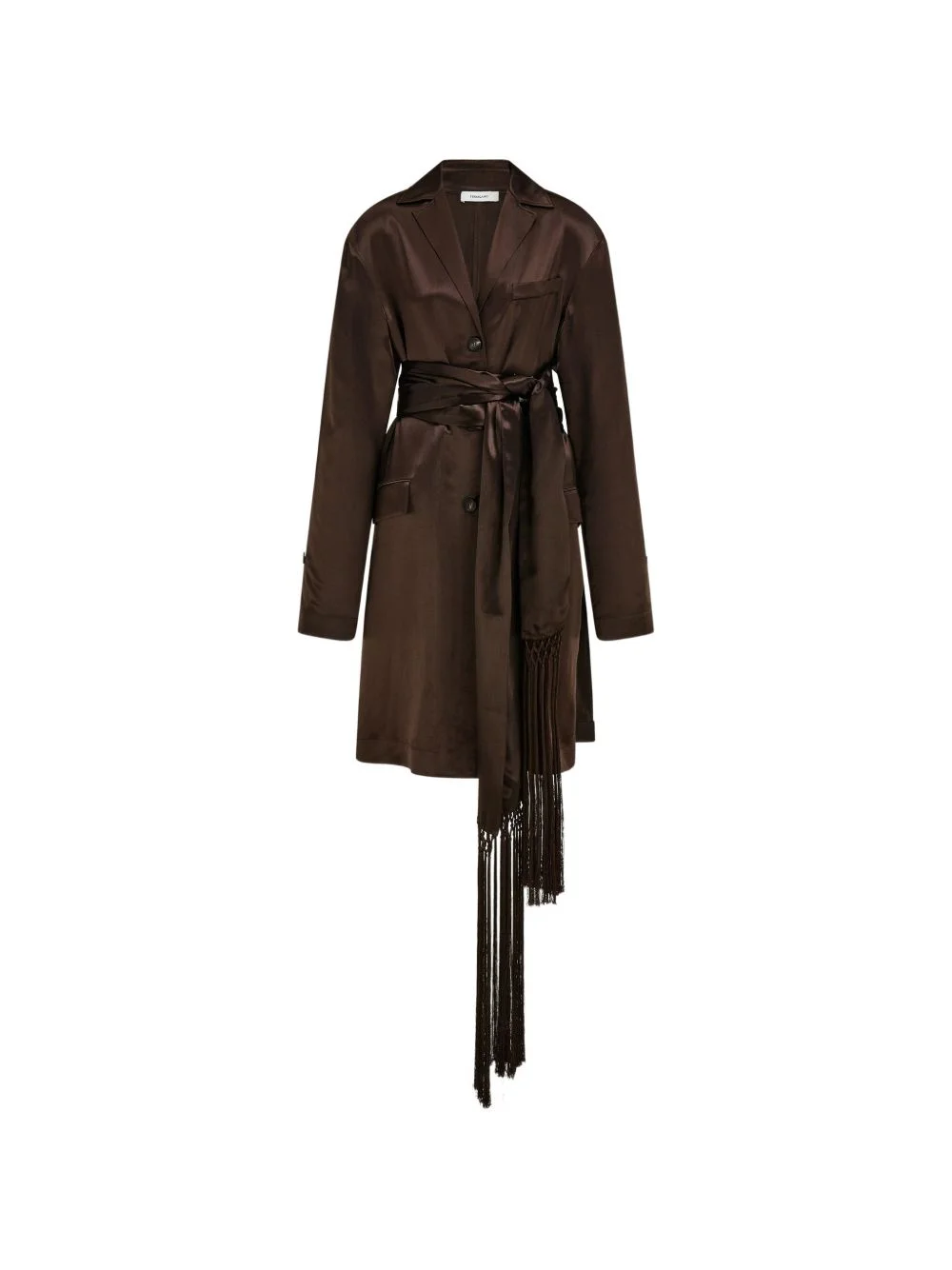satin chemisier Highlights - Espresso - Welt-pockets - Long-sleeves - Lapel-collar - Front button-closure - Fringed sash Made in Italy Composition Outer: Viscose 59%, Fabric 41% Lining: Rayon 100% Washing instructions Read Manufacturer Guidelines