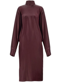 satin high-neck dress Highlights - Burgundy - Satin finish - Rear slit - High neck - Rear button fastening - Long sleeves - Buttoned cuffs Made in Italy Composition Outer: Acetate 64%, Viscose 36%