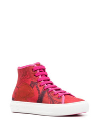 scarf-print high-top trainers Salvatore Ferragamo puts a sophisticated spin on this sporty silhouette, by adorning these trainers with a pattern often seen in the house's silk scarfs. The high-top pair is further elevated by the raised Gancini motifs along the sole. Made in Italy Composition Outer: Fabric 100% Sole: Rubber 100% Lining: Fabric 100%, Leather 100% SIZE & FIT Measurement HEIGHT 3.74 in(9.5 cm) Sole height 1.18 in(3 cm)