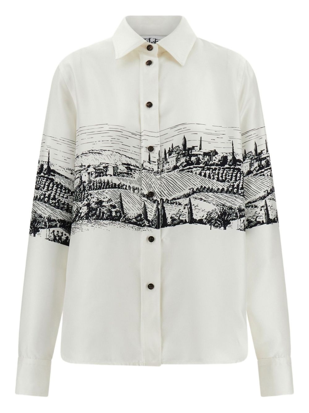 silk shirt Highlights - White - Front button fastening - Straight-point collar - Shirt sleeves - Curved hem Made in Italy Composition Organic Silk 100%