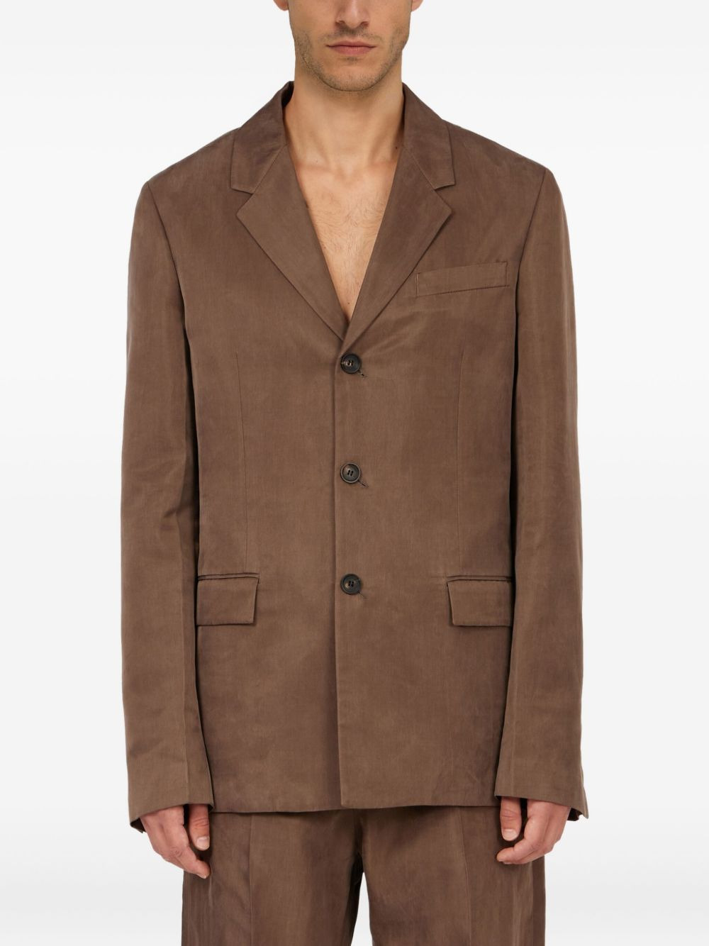 single-breasted blazer Highlights - Brown - Front button fastening - Classic lapels - Two side flap pockets - Long sleeves Made in Italy Composition Lining: Rayon 100% Outer: Lyocell 100% Washing instructions Read Manufacturer Guidelines