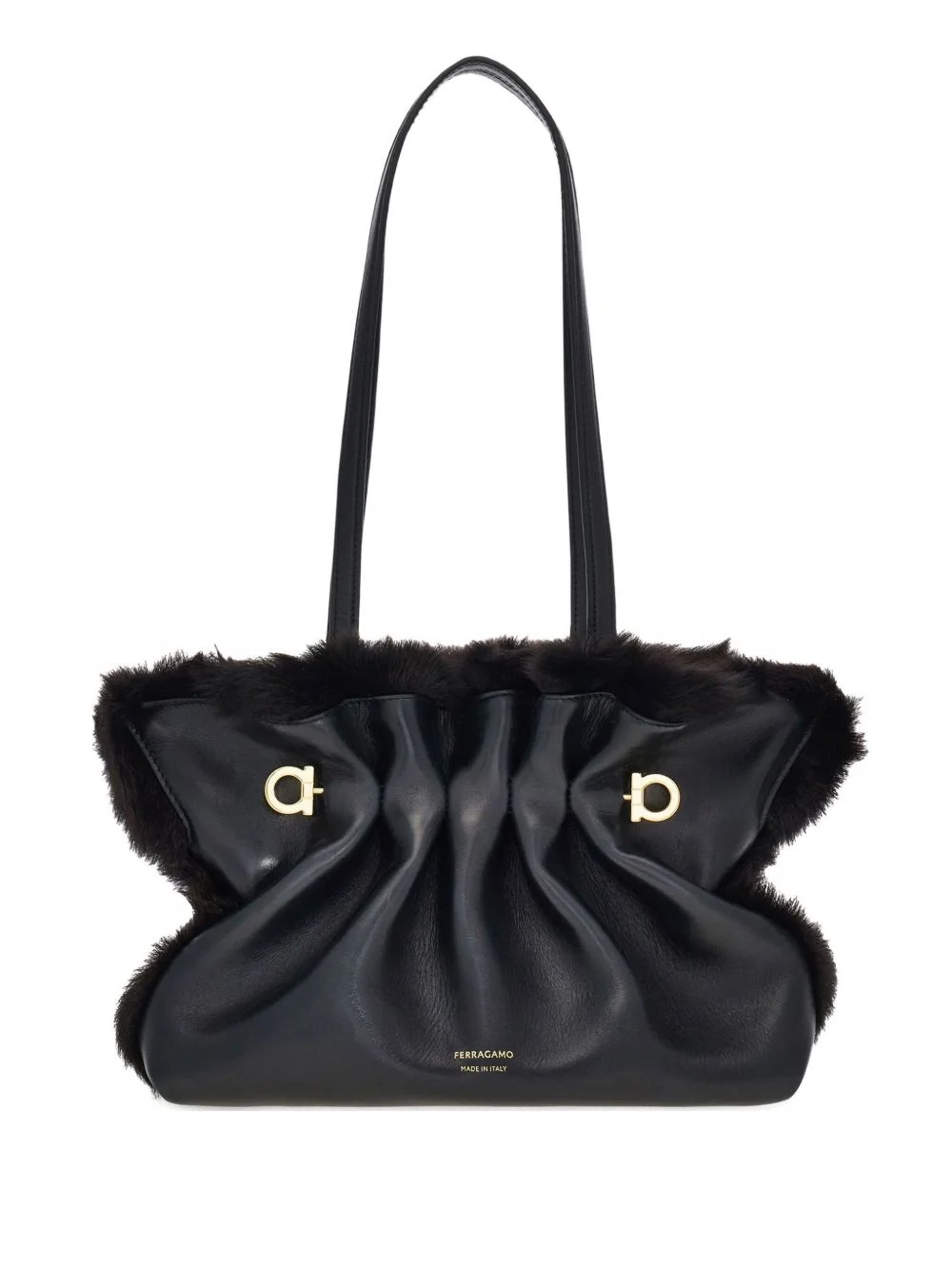 small Gancio-pin shoulder bag Highlights - Black - Leather - Gold-tone gancio-pin - Removable shoulder strap Made in Italy Composition Outer: CALFSKIN 70%, Kid Leather 30%