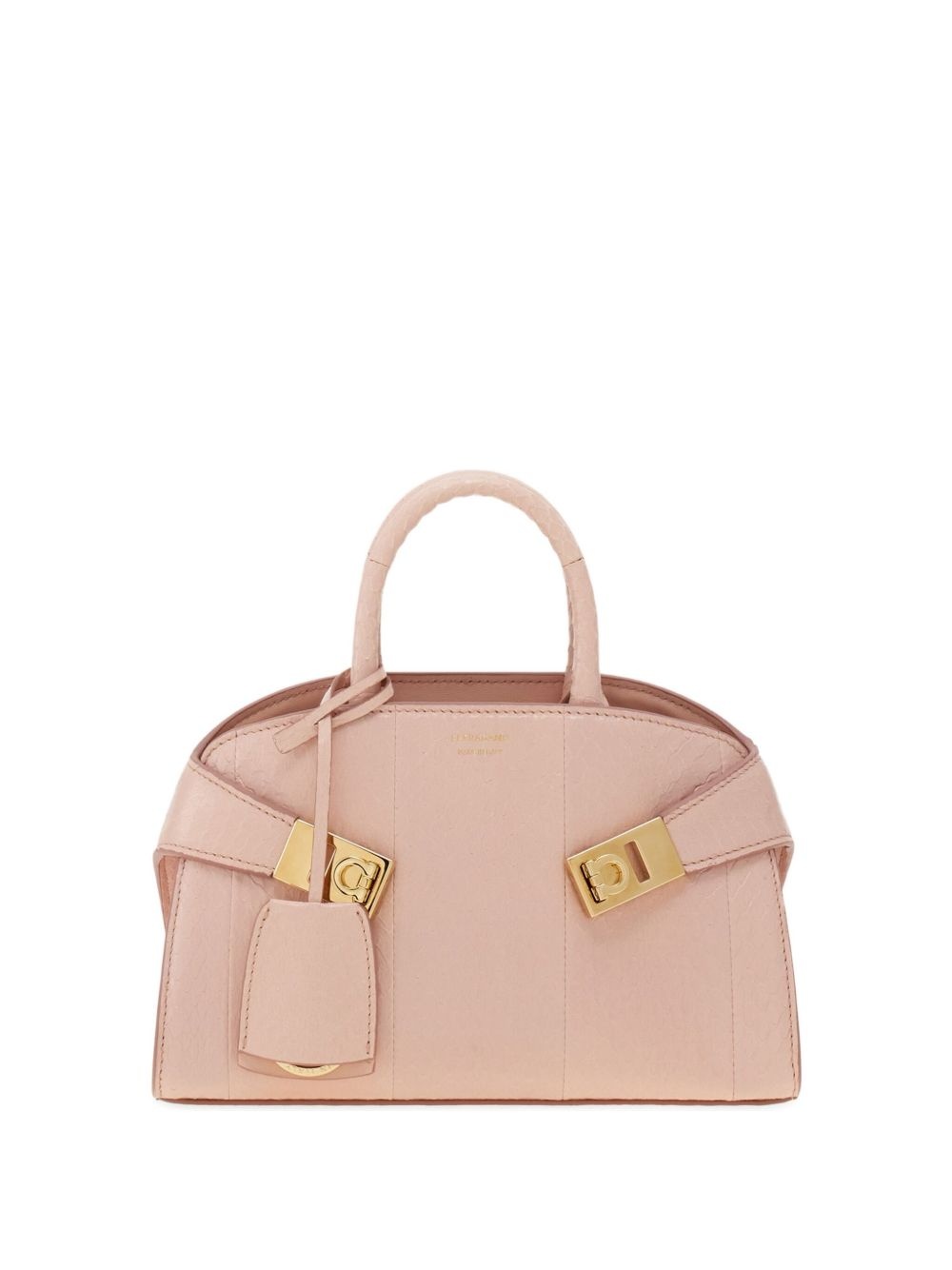 small Hug tote bag Highlights - Powder pink - Two rolled top handles - Adjustable detachable shoulder strap - Gancini buckle - Main compartment Made in Italy Composition Outer: Elaphe Carinata 100%