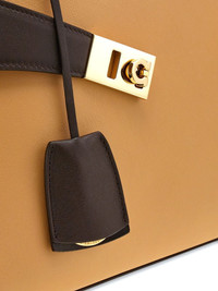 small Hug tote bag Highlights - Camel brown/brown - Calf leather - Grained texture - Colour-block design - Debossed logo to the front - Ring hardware detailing - Gancini plaque - Toggle fastening - Two rolled top handles - Adjustable detachable shoulder strap - Main compartment - Internal zip-fastening pocket - Leather lining - Gold-tone hardware - This piece comes complete with a protective dust bag. Made in Italy Composition Outer: Calf Leather 100% Lining: Lamb Skin 95%, Calf Leather 5% SIZE & FIT Measurement DEPTH 7.4 in(18.7 cm) HEIGHT 8.6 in(21.8 cm) STRAP 21.65 in(55 cm) WIDTH 12.4 in(31.4 cm)