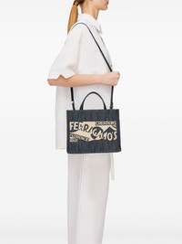 small Venna logo-embroidered tote bag Highlights - Blue - Beige - Denim - Leather trim - Embroidered logo to the front - Two flat top handles - Detachable shoulder strap - Open top - Internal zip-fastening pocket - Internal logo stamp - Leather lining Made in Italy Composition Outer: CALFSKIN 100%, Denim 100% SIZE & FIT Measurement DEPTH 5.51 in(14 cm) HANDLE 3.93 in(10 cm) HEIGHT 8.26 in(21 cm) WIDTH 10.43 in(26.5 cm)