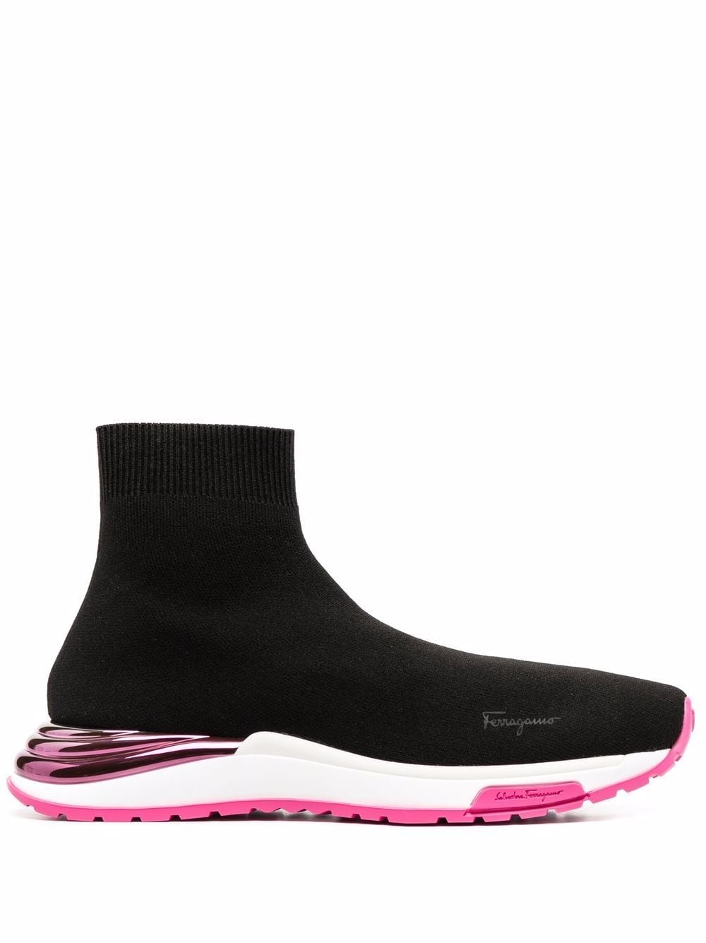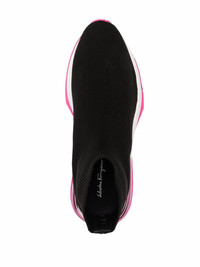 sock-style sneakers Black sock-style trainers from Ferragamo. Highlights - Black - Sock-style ankle - Sock-style vamp - Flat rubber sole Made in Italy Composition Outer: Polyester 100% Lining: Leather 100% Sole: Rubber 100% SIZE & FIT Measurement HEEL 1.18 in(3 cm) HEIGHT 4.33 in(11 cm) Sole height 0.59 in(1.5 cm)