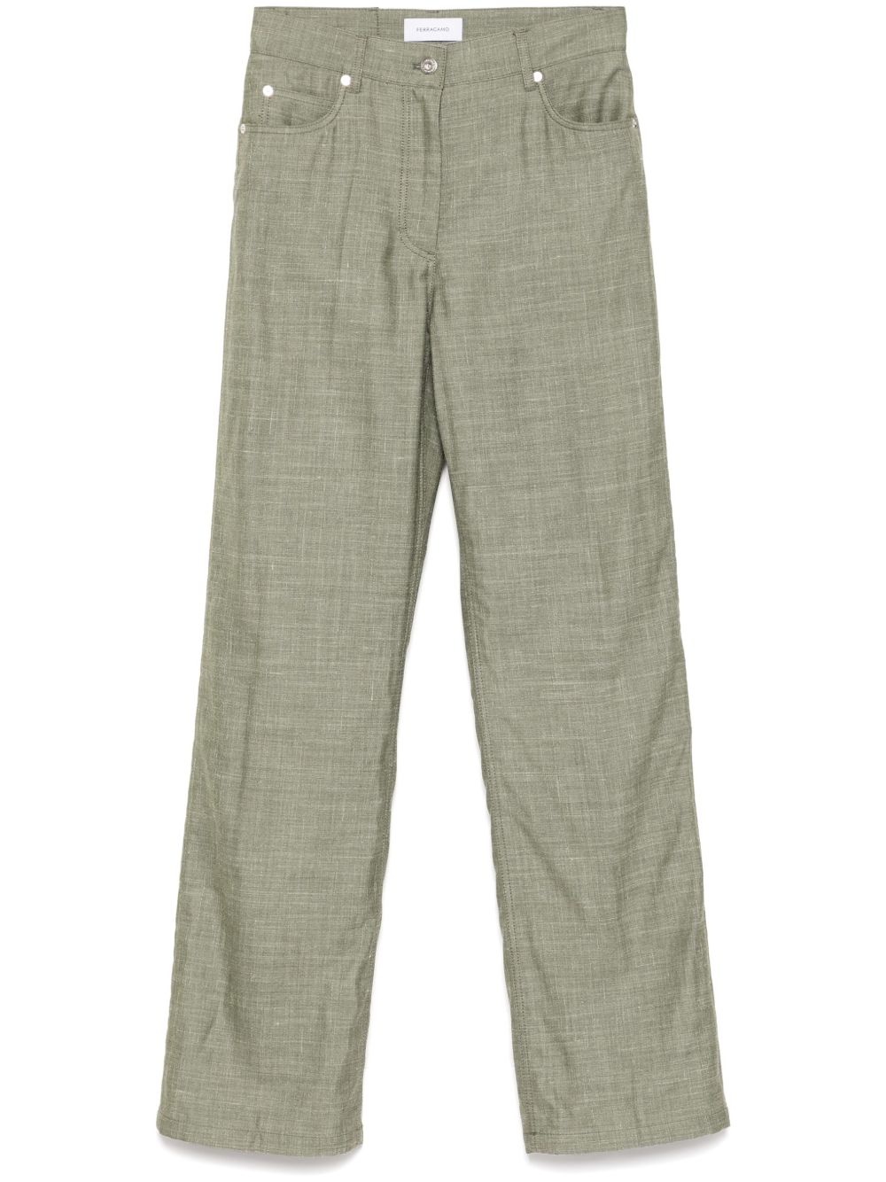 straight hem trousers Highlights - Olive green - Zip and button fastening - Classic five pockets - Straight hem Made in Italy Composition Virgin Wool 69%, Silk 20%, Linen/Flax 10%, Polyamide 1%