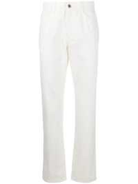 straight-leg logo patch jeans A classic straight-leg design creates a timeless look for these Ferragamo jeans. Crafted from cotton, they showcase the brand's attention to quality and materials. Made in Italy Composition Cotton 100%, Leather 100% SIZE & FIT Model measurements Height 6 ft 2 in(1.87 m) Bust/Chest 37.79 in(96 cm) Hips 37.79 in(96 cm) Waist 30.31 in(77 cm) FittingInformation This piece fits true to size. We recommend you get your regular size Cut for a slim fit Made with a mid-weight non-stretch fabric Washing instructions Dry Clean Only