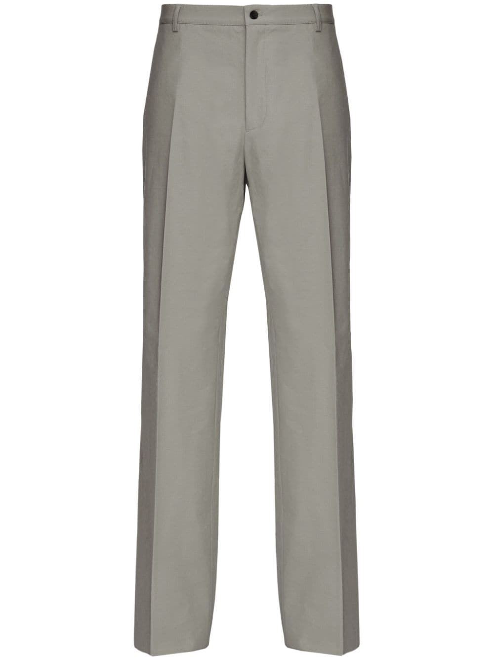straight-leg tailored trousers Highlights - Grey - Concealed fly and button fastening - Belt loops - Two side slit pockets - Pressed crease - Two rear button-fastening jetted pockets - Straight leg Made in Italy Composition Outer: Viscose 54%, Linen/Flax 46% Lining: Cotton 100%