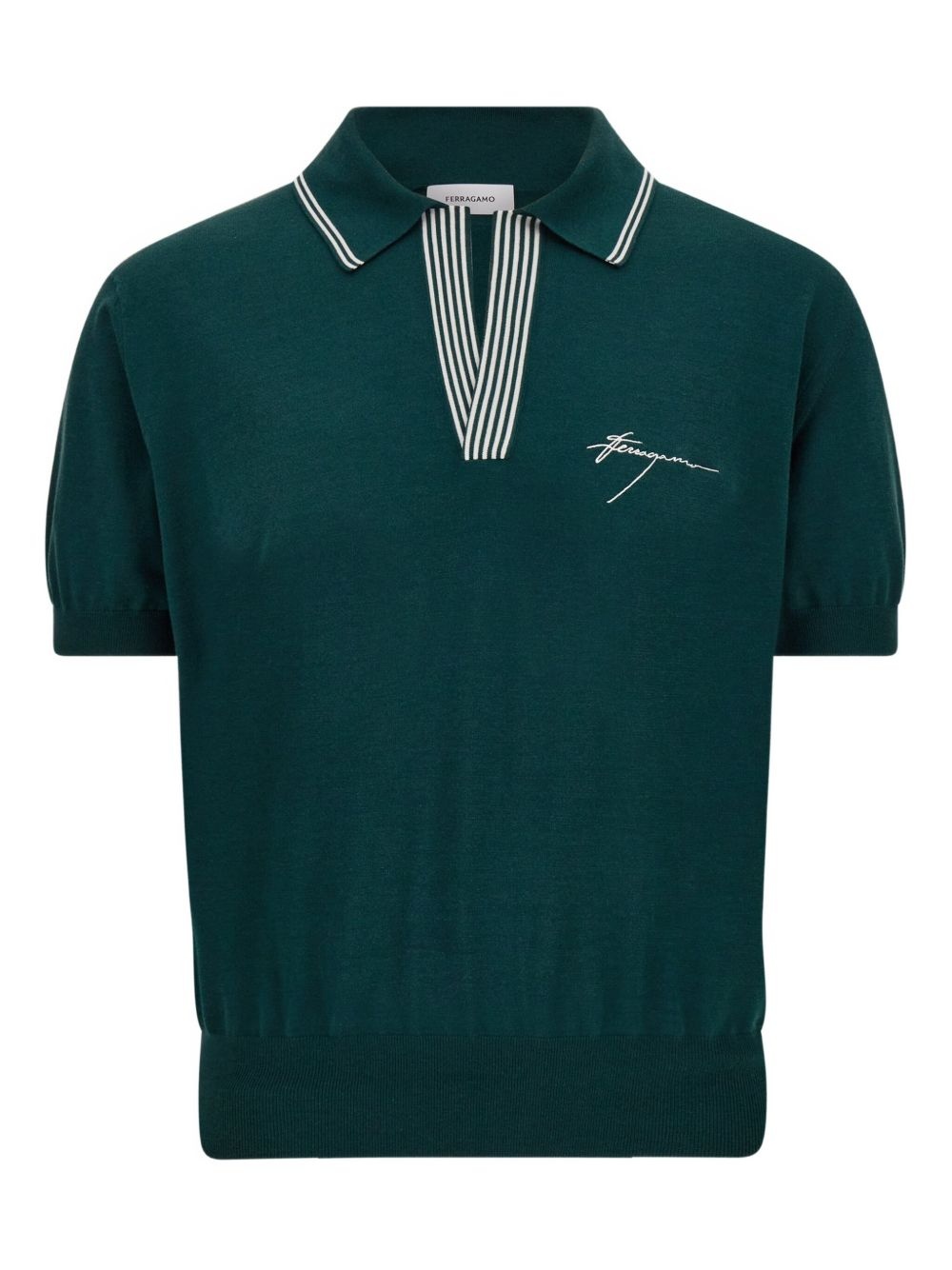 striped-collar T-shirt Highlights - Dark green - Contrasting striped collar - Embroidered logo detail - Short sleeves - Ribbed hem Made in Italy Composition Silk 55%, Cotton 45%