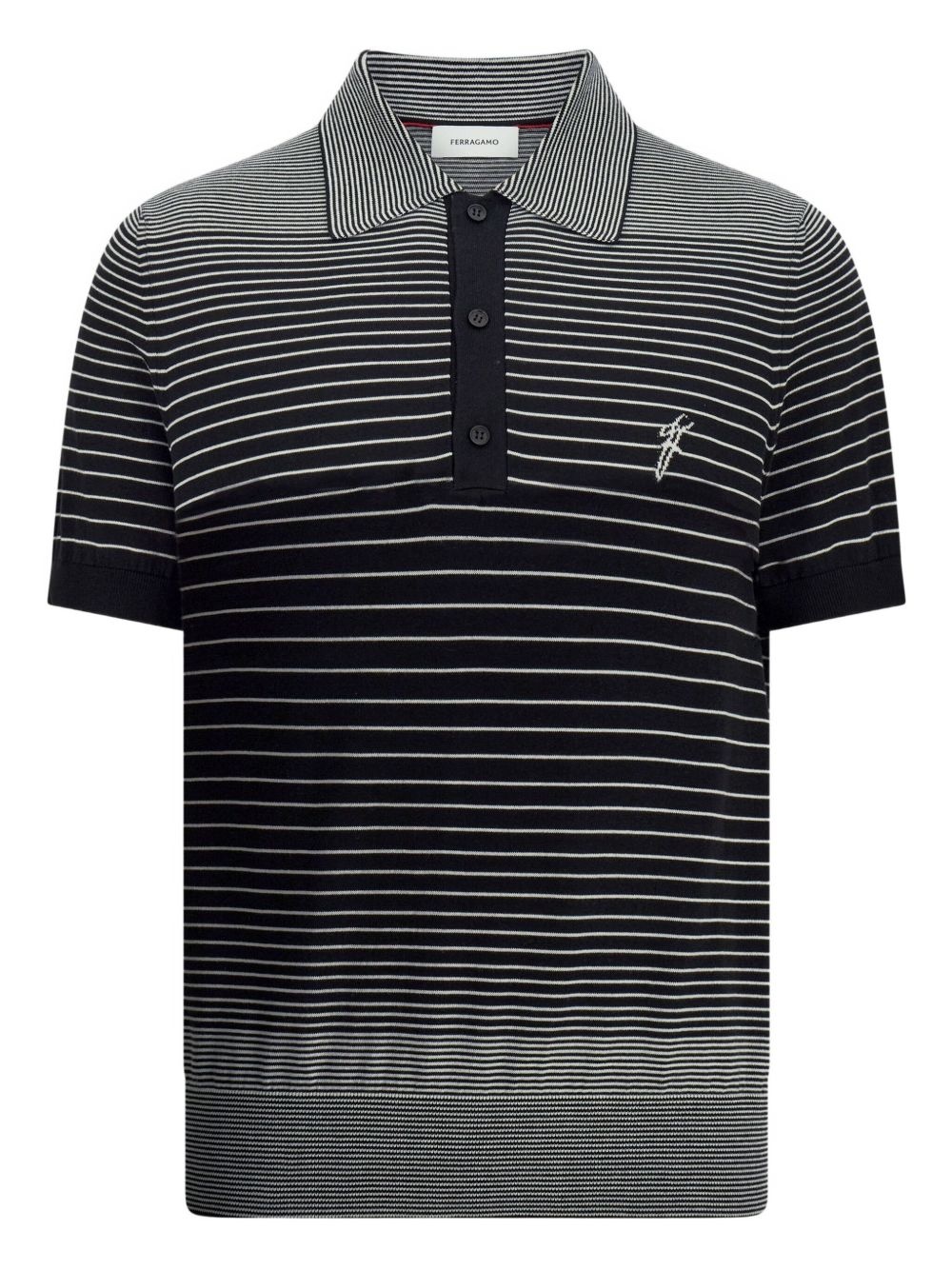 striped polo shirt Highlights - Black and gray - Horizontal stripe pattern - Button placket - Short sleeves - Embroidered logo detail Made in Italy Composition Silk 55%, Cotton 45%