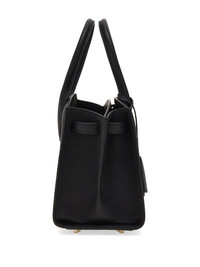 structured leather tote bag Highlights - Black - Gold-tone hardware - Front flap detail - Detachable keychain - Dual top handles - Interior slip pocket Made in Italy Composition Outer: CALFSKIN 100% SIZE & FIT Measurement DEPTH 4.92 in(12.5 cm) HANDLE 4.33 in(11 cm) HEIGHT 7.28 in(18.5 cm) WIDTH 11.02 in(28 cm)