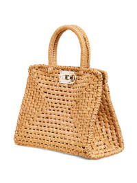 Studio Box raffia tote bag Highlights - Sand beige - Raffia - Interwoven design - Silver-tone hardware - Two rolled top handles - Gancini buckle - Main compartment - Removable pouch Made in Italy Composition Lining: Fabric 70%, Lambskin 30% Outer: Fabric 100% SIZE & FIT Measurement DEPTH 5.7 in(14.5 cm) HEIGHT 9.44 in(24 cm) WIDTH 11.41 in(29 cm)