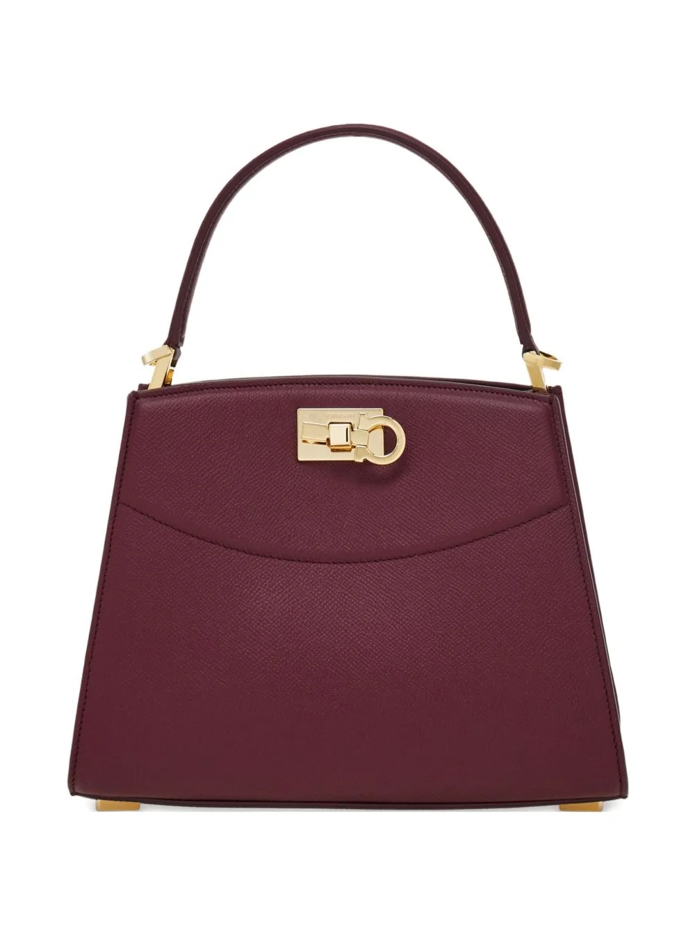 Studio Box top-handle satchel bag Highlights - Plum - Single top-handle - Adjustable removable shoulder strap - Gold-tone hardware - Metal feet - Gancio slider-clasp fastening Made in Italy Composition Outer: CALFSKIN 100% Lining: Lambskin 100% SIZE & FIT Measurement STRAP 7.75 in(19.7 cm) HEIGHT 7.28 in(18.5 cm) WIDTH 4.72 in(12 cm) DEPTH 4.72 in(12 cm)