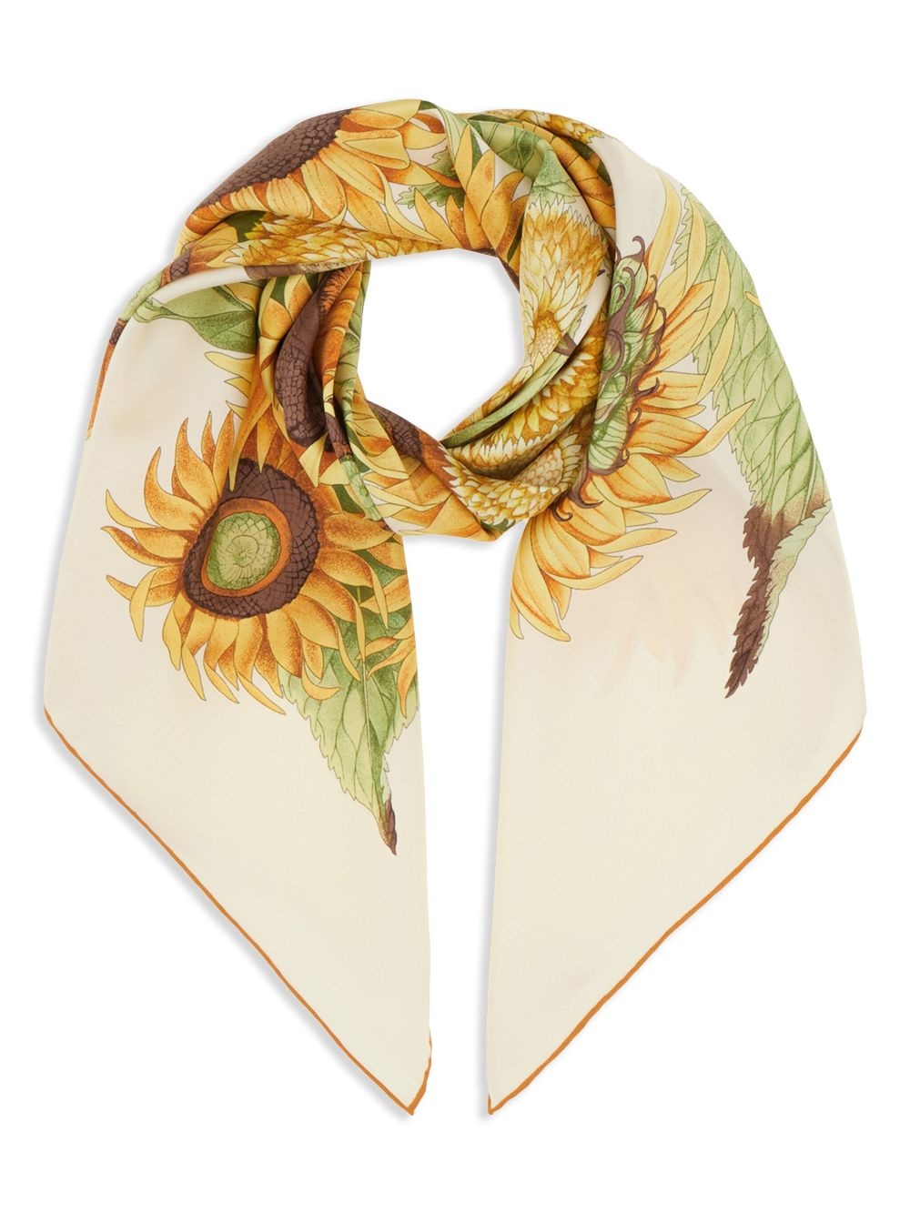 Sunflower scarf Highlights - Light beige - Floral print - Logo print to the front - Contrasting trim - Finished edge Made in Italy Composition Silk 100% SIZE & FIT Measurement LENGTH 35.43 in(90 cm) WIDTH 35.43 in(90 cm)